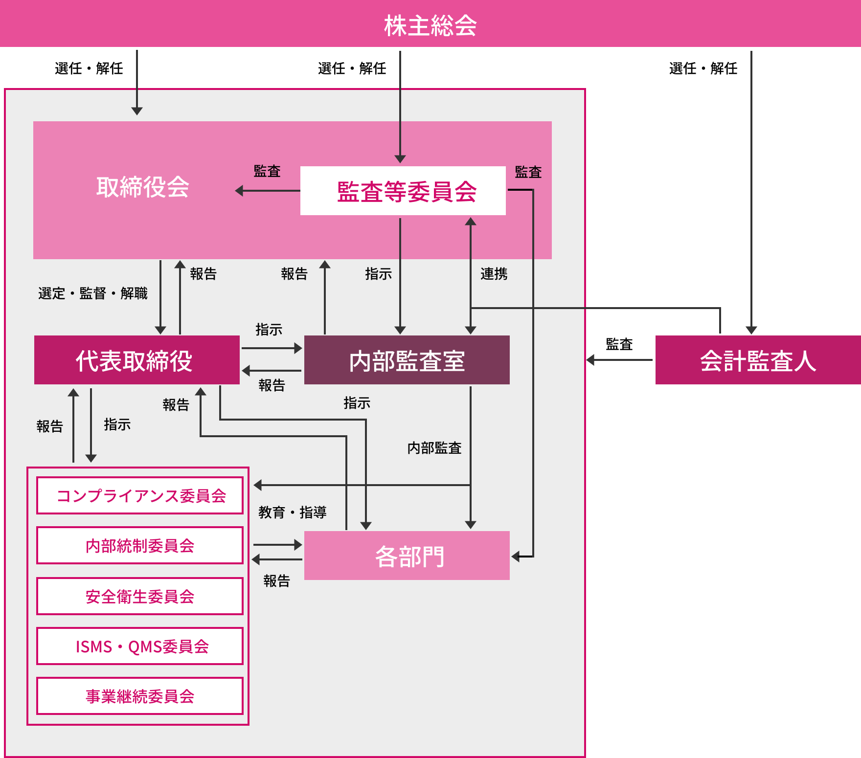 当社は、企業価値の持続的な向上や企業として社会的責任を果たしていくために、コーポレート・ガバナンス体制の強化を経営の重要事項として認識し、以下のとおり取り組んでおります。